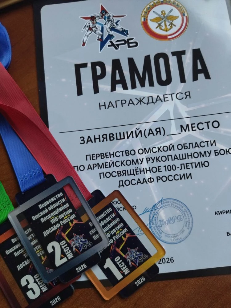 2026 год в России проходит под знаком 100-летия ОСОАВИАХИМа-ДОСААФ. В честь этой грядущей даты 12 апреля 2026 года в СК «Искра» прошли Чемпионат и Первенство Омской области по армейскому рукопашному бою, посвященные 100-летию ДОСААФ и Фестиваль по армейскому рукопашному бою, посвященный 100-летию ДОСААФ.