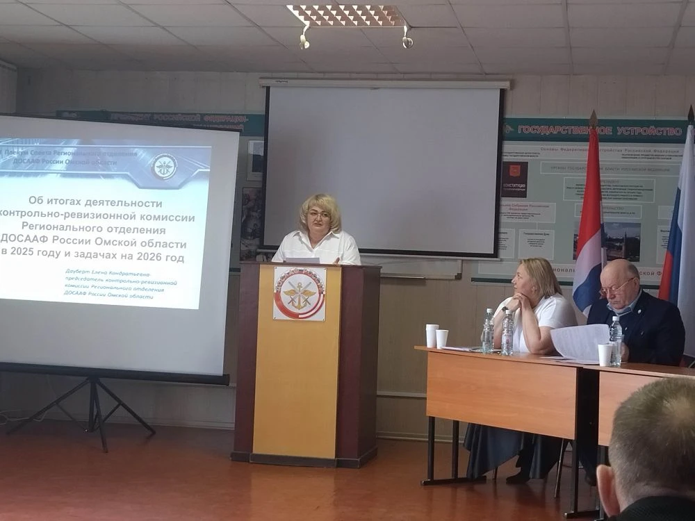 С докладом о проделанной в 2025 году работе, итогах кампании по обучению военно-учетным специальностям, вызовах и задачах регионального отделения на 2026 год выступили и.о. председателя РО ДОСААФ России Омской области Елена Юрьевна Усенко и председатель контрольно-ревизионной комиссии Е.К. Дауберт.